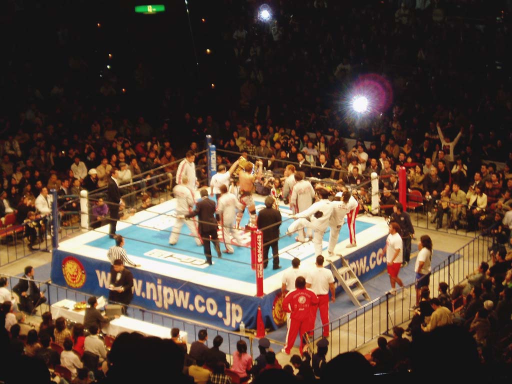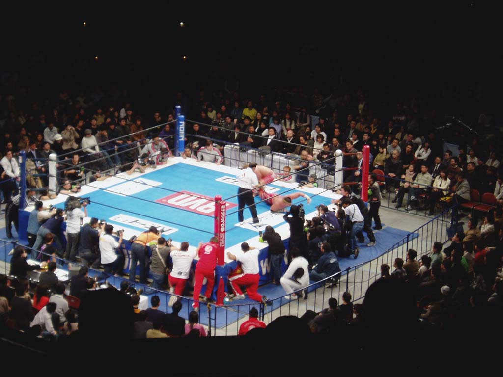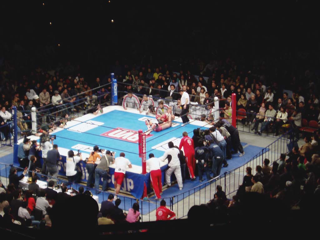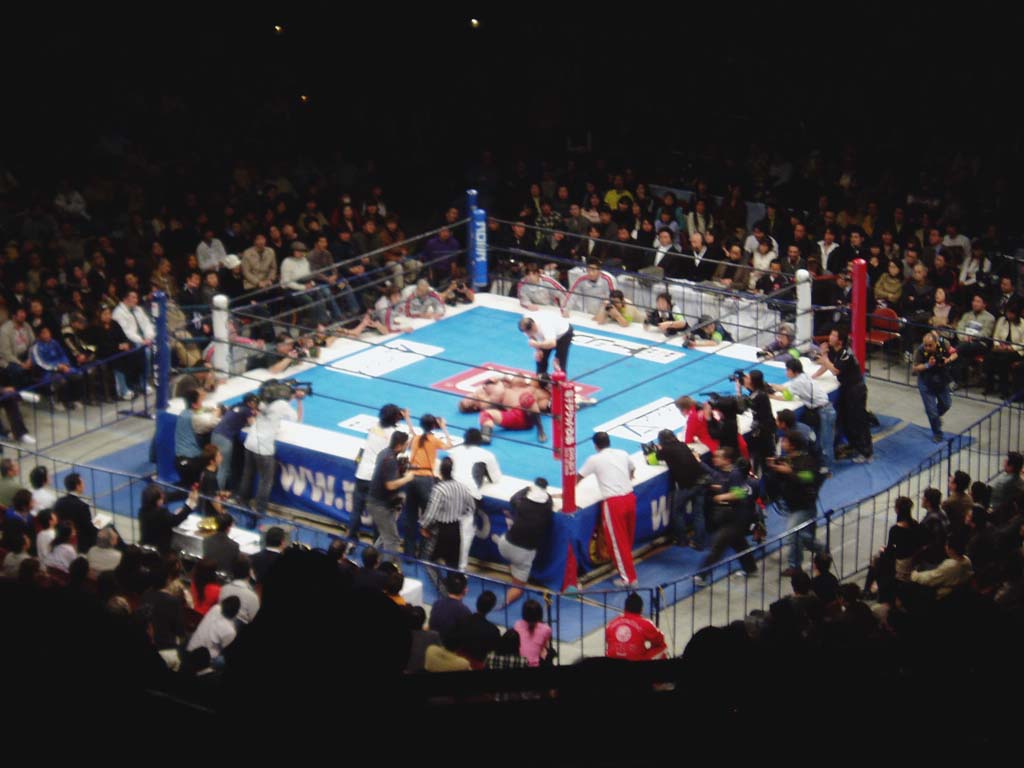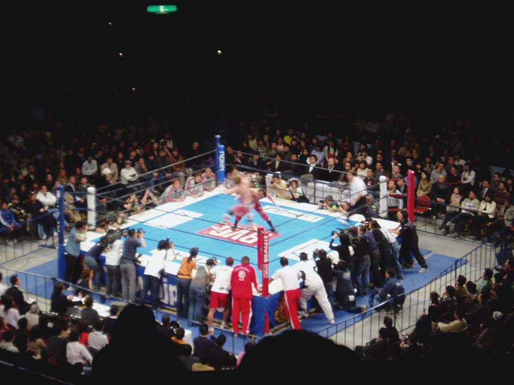 京平レフリーがKO判定を下した直後ぐらいの図。 試合時間が50分超えた辺りから、わかっている人は溜息を漏らして 55分を超えると流石にピュアな人達からも大ブーイング、怒号が聞こえてきたので、京平レフリーの判断は正しかったと思います。 (仮定の話として)この試合がフルタイムドローだとしたら、会場に来ていた人達は失望していたろうし ファンは不信感を抱いて、プロレスを捨てる人も増えていた事でしょう。