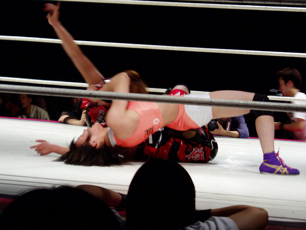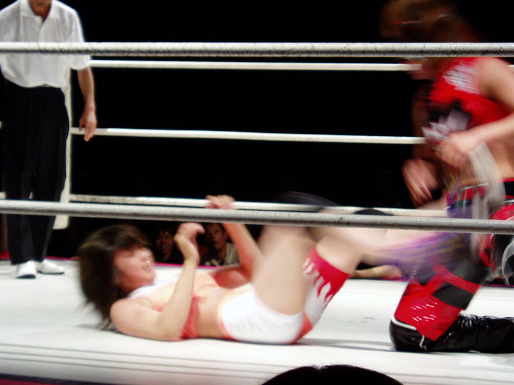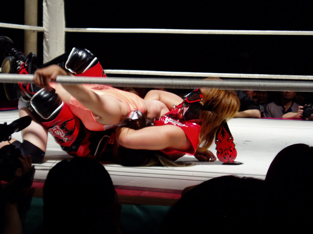 もっともプロレスらしい技であるボストンクラブ(逆エビ固め)で渡辺菜穂を攻めいます。