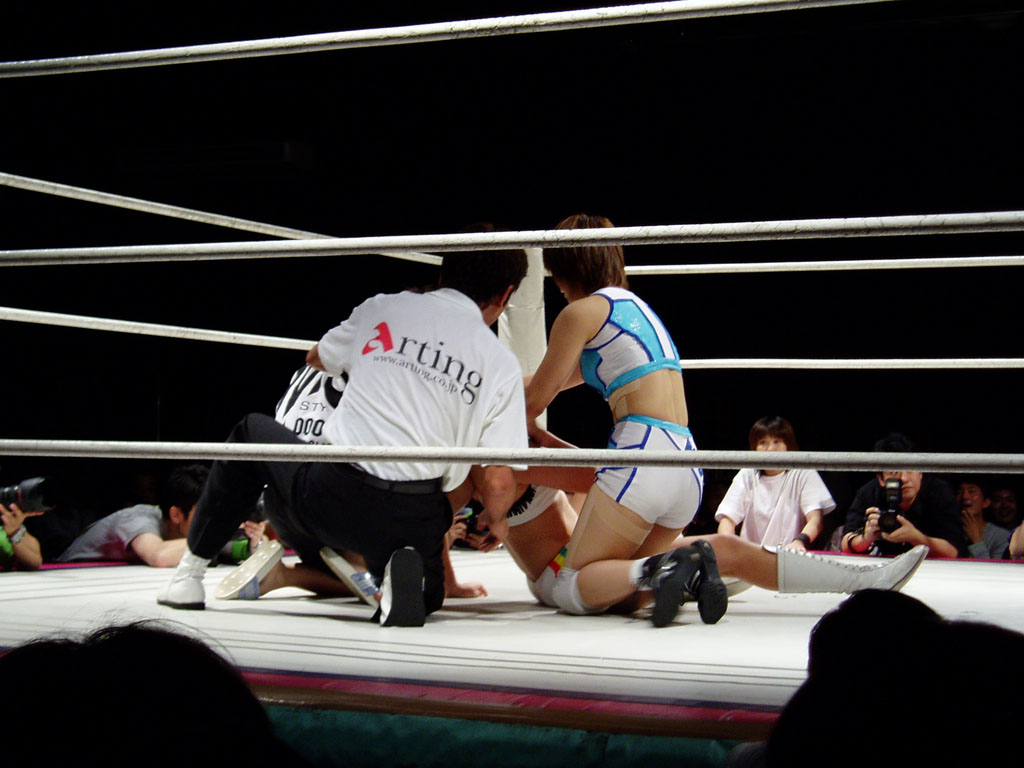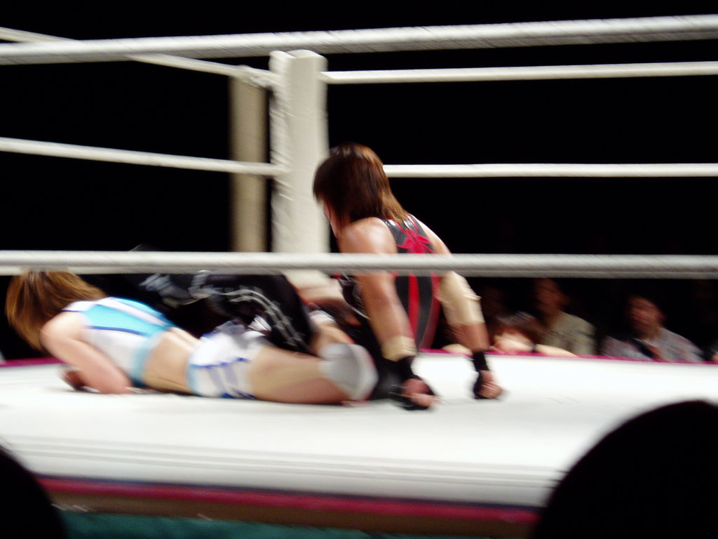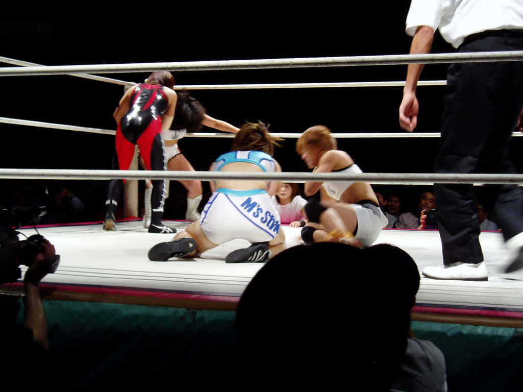 吉田万里子が掴まり、新人コンビ(栗原あゆみと木村響子)が二人がかりで攻撃。