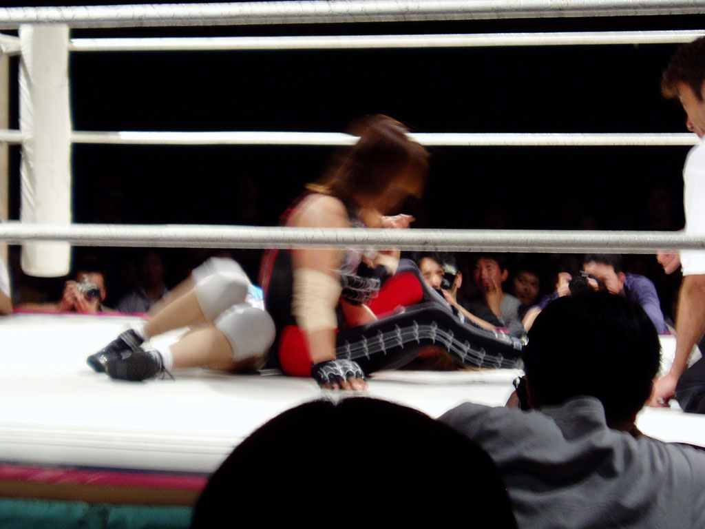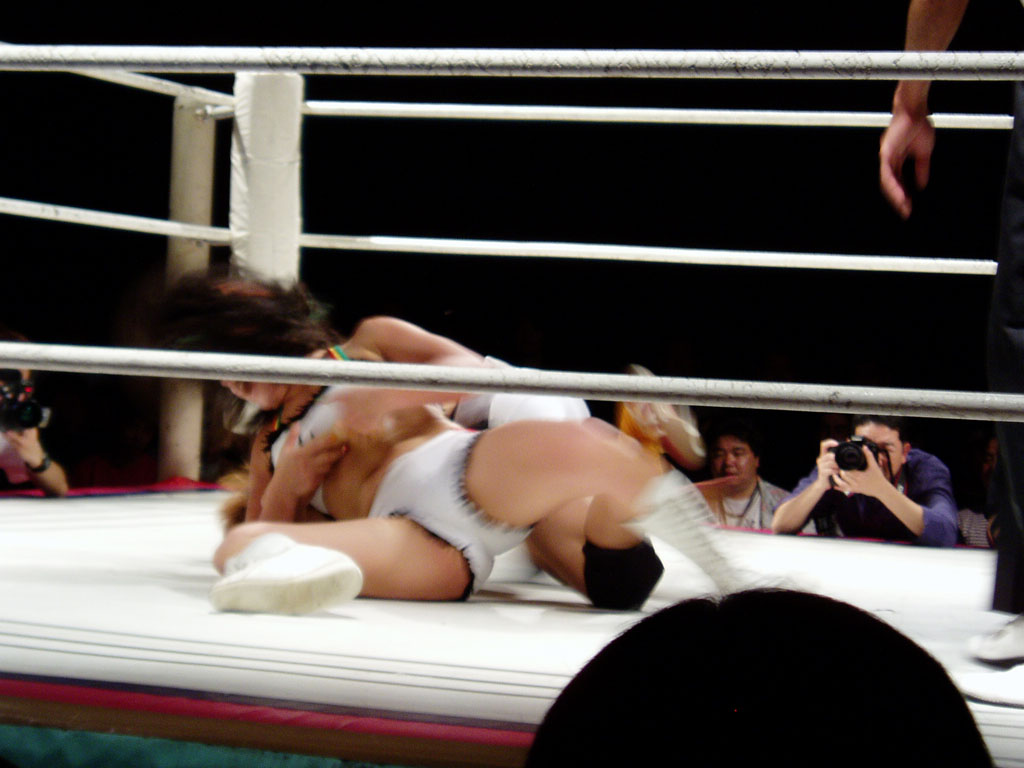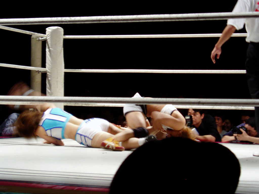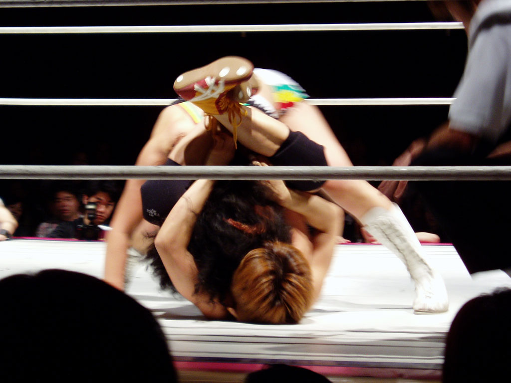 (見切れているものの)画像、右側で藤井恵が栗原あゆみの腕関節を伸ばしている最中。